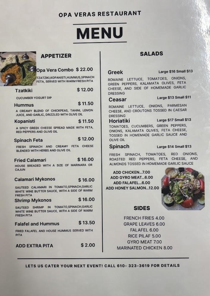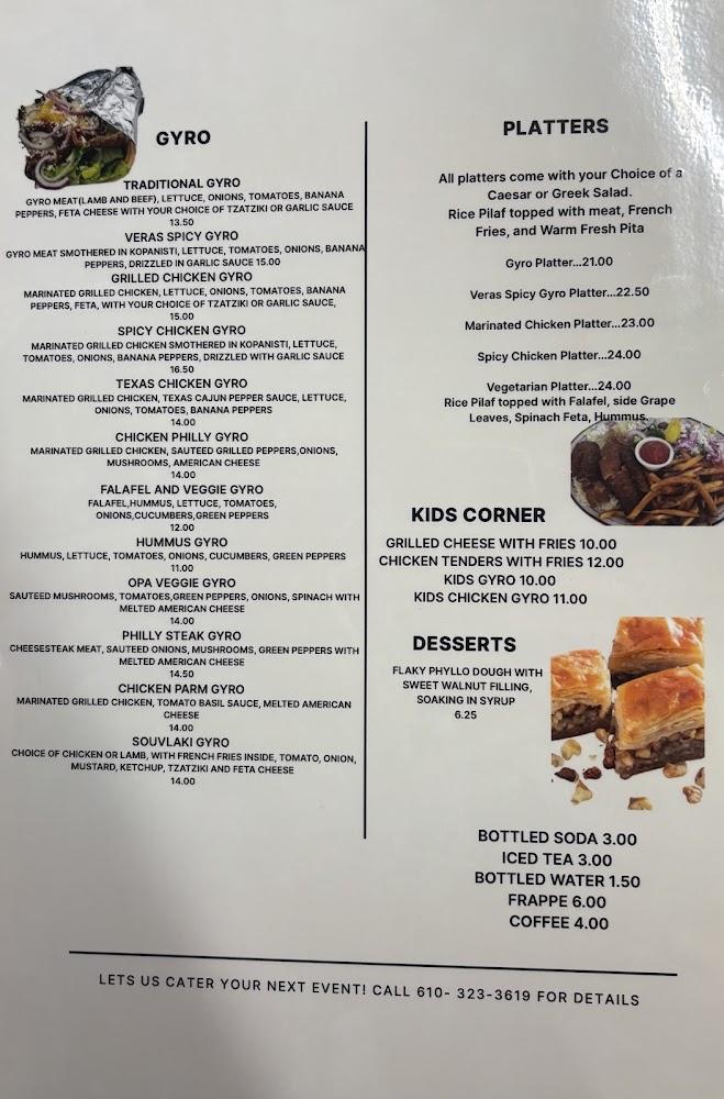 Welcome to Opa Vera's, your go-to Greek restaurant located at 300 E High St, Pottstown, PA. Indulge in a delightful array of traditional dishes, including mouthwatering gyros and savory fries, all within a warm and inviting atmosphere. Whether you're dining solo, enjoying lunch with friends, or celebrating with family, our quick service ensures you won't wait long. We offer takeout, delivery, and catering, making it easy to enjoy our excellent desserts on the go. Our accessible facilities and kid-friendly menu ensure everyone is welcome. Join us for a meal and experience the flavors of Greece today!