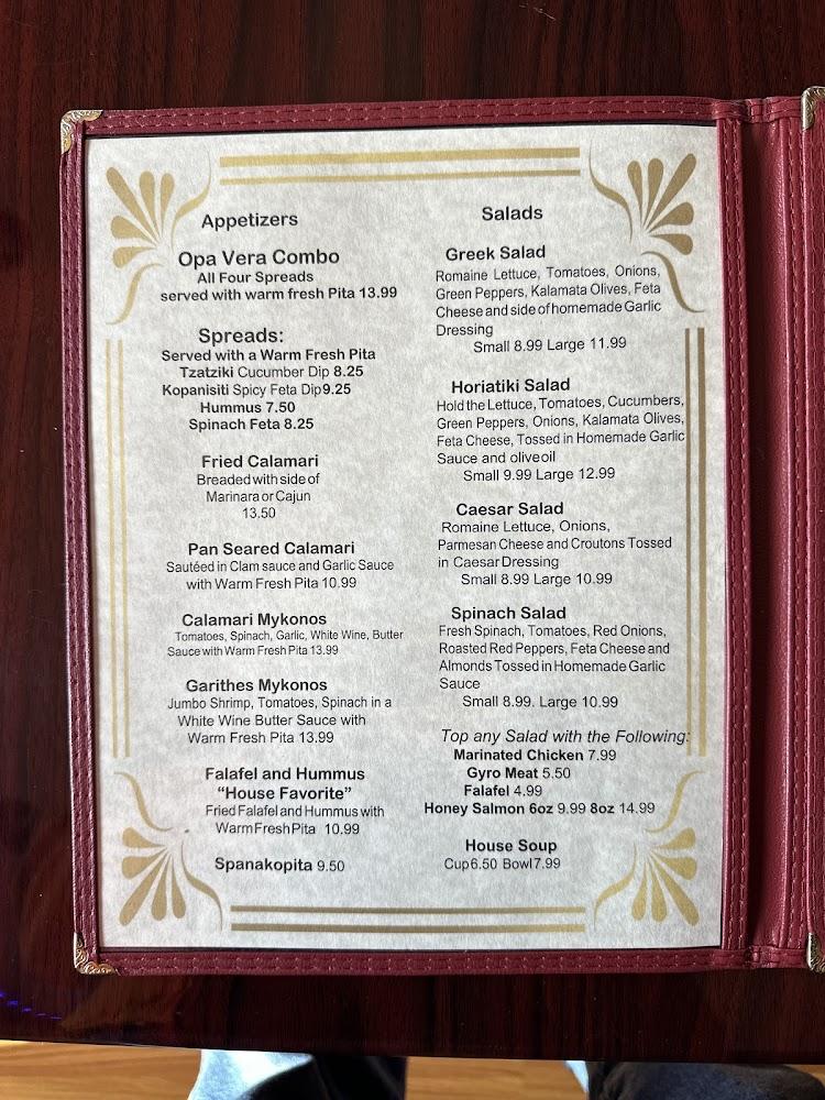 The menu at Opa Vera's reflects the essence of Greek cuisine, with dishes crafted from fresh ingredients. Highlights include the Traditional Gyro and various platters, ideal for sharing. Options for children ensure that all family members are accommodated.